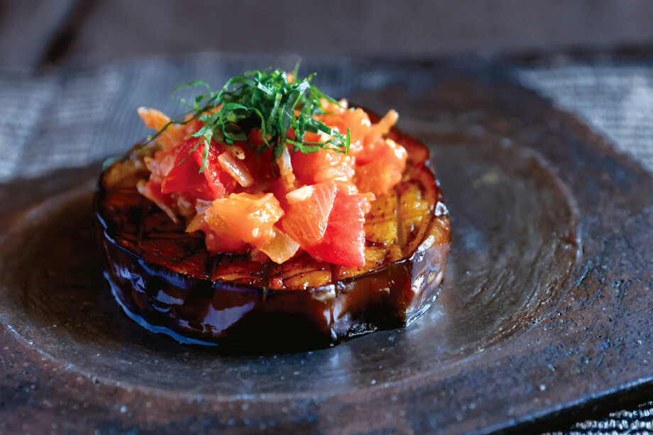 Recipe 1 波渡なすステーキ トマトみそペーストのせ