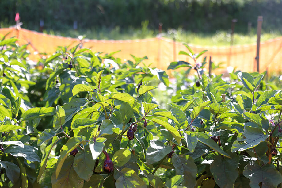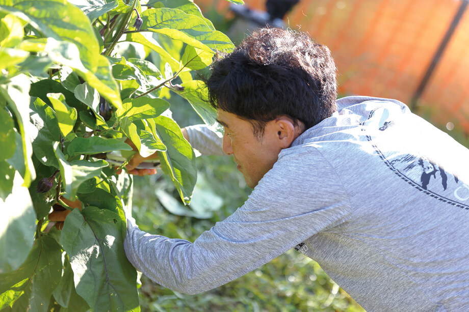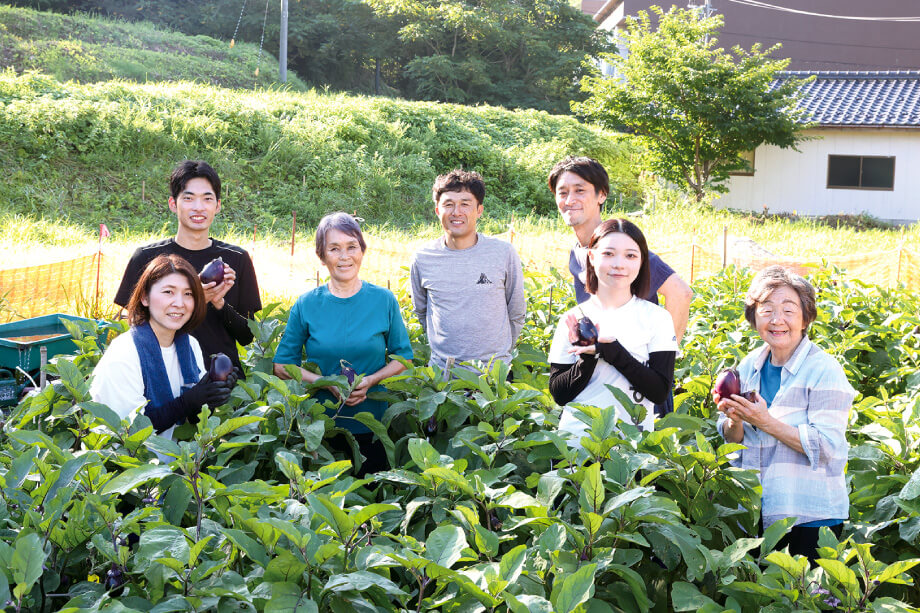 ただこれまで栽培を続けてきた小堅保育園の敷地は、連作障害によってウィルスが蔓延してしまい10年間は栽培ができない事態に。そこでもともと田んぼで30年ほど耕作放棄地となっていた地域の土地を借りて開墾からスタートした。苦労もあるけれど、何事もおもしぇぐで、と智さん。農業は素人、耕運機を使うのも何もかも初めての経験だったが、波渡なすばばちゃんたちの協力と若い山大生の力もあって、新保存会となってから1年目の畑では、見事ななすが実った。まだまだ地域内でも知らない人もいるとのことで、収穫があった日は集落の管内放送で呼びかけながら公民館で販売する試みも。集落の人からも好評なんだそう。