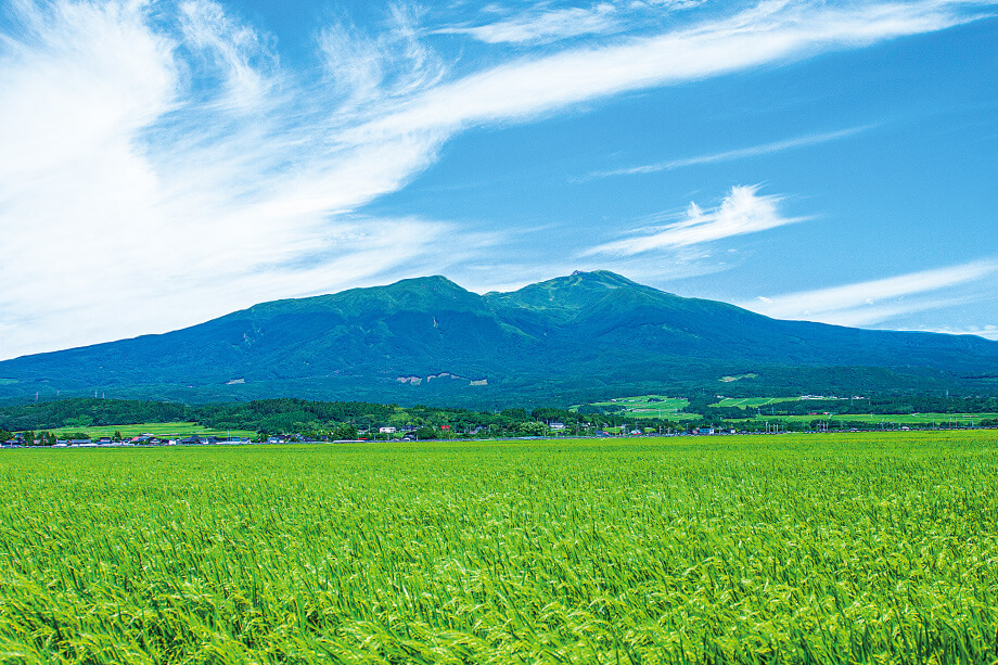 標高2236m、日本百名山の1つにも数えられる活火山です。庄内から見ると遊佐町にあるように見え、山頂も遊佐町にありますが、山としては秋田県にもまたがっています。雪が積もった様子が富士山に似ていることから、「出羽富士」と呼ばれることもあるようです。