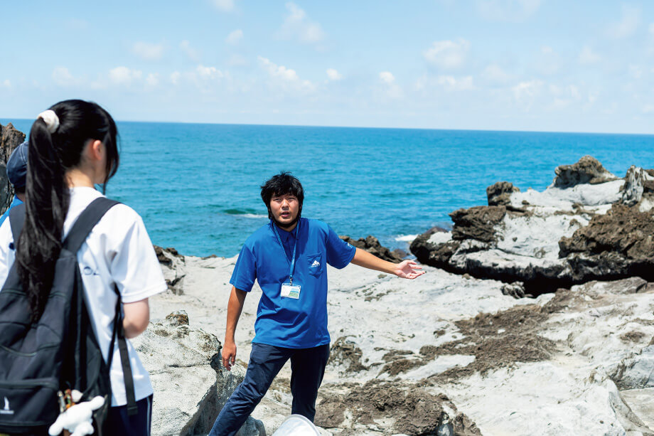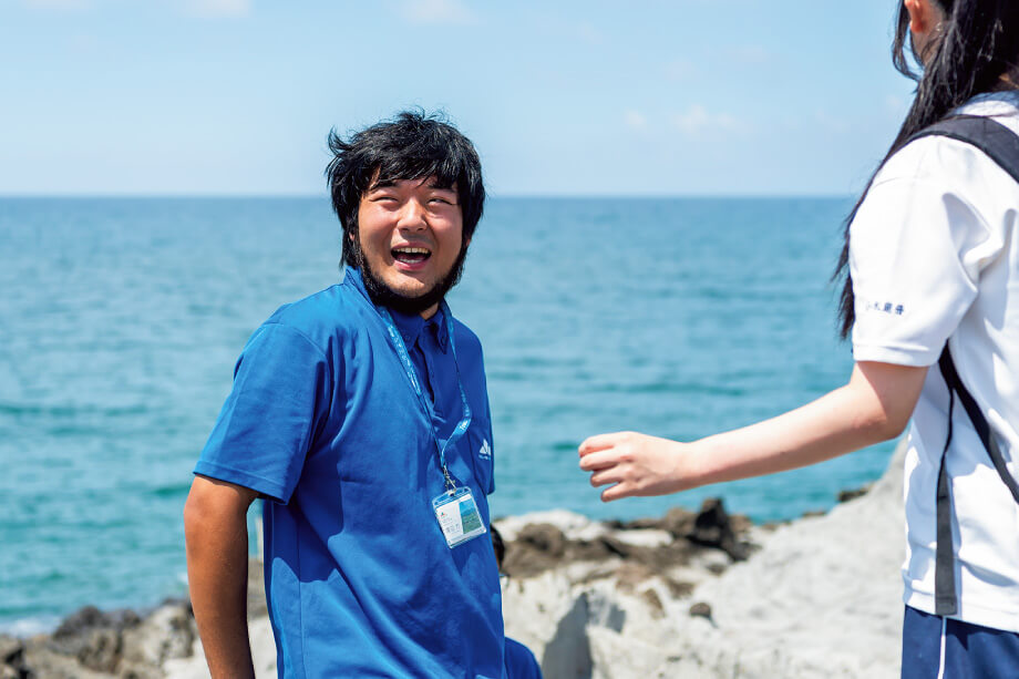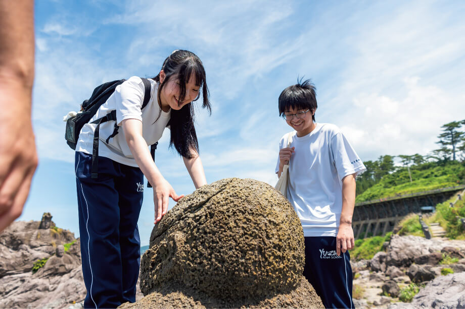 標高1150mの5合目から0mの海岸まで、いろんな話とともに案内してくださったお2人に、最後に「高校生に伝えたいことは?」という質問をしてみました。「まずは遊佐に遊びに来てみてほしい」と話す渡辺さん、移住を決めたきっかけは鳥海山に惹かれたことだといいます。「登るのが大変であれば、近くで見るだけでも違うと思うんです。丸池様や胴腹滝など、鳥海山に関係が深いスポットもたくさんあるし、ぜひ鳥海山を肌で感じてみてほしいですね」。大野さんは、日頃から「なぜ?」を大切にしてほしいと話します。「地元のことって当たり前すぎて、おもしろいトピックがあっても気づきにくいんですけど、『なぜ?』の視点であらためて見てみると、いろんな発見があると思っていて。その発見のきっかけを、たくさんの人に渡していくのが私たちの役割なんですよね。発見が別の事柄とどんどんつながっていくのが楽しいし、誰かに話したくもなるので、学校の授業などでもぜひジオパークを活用していただきたいですね」。