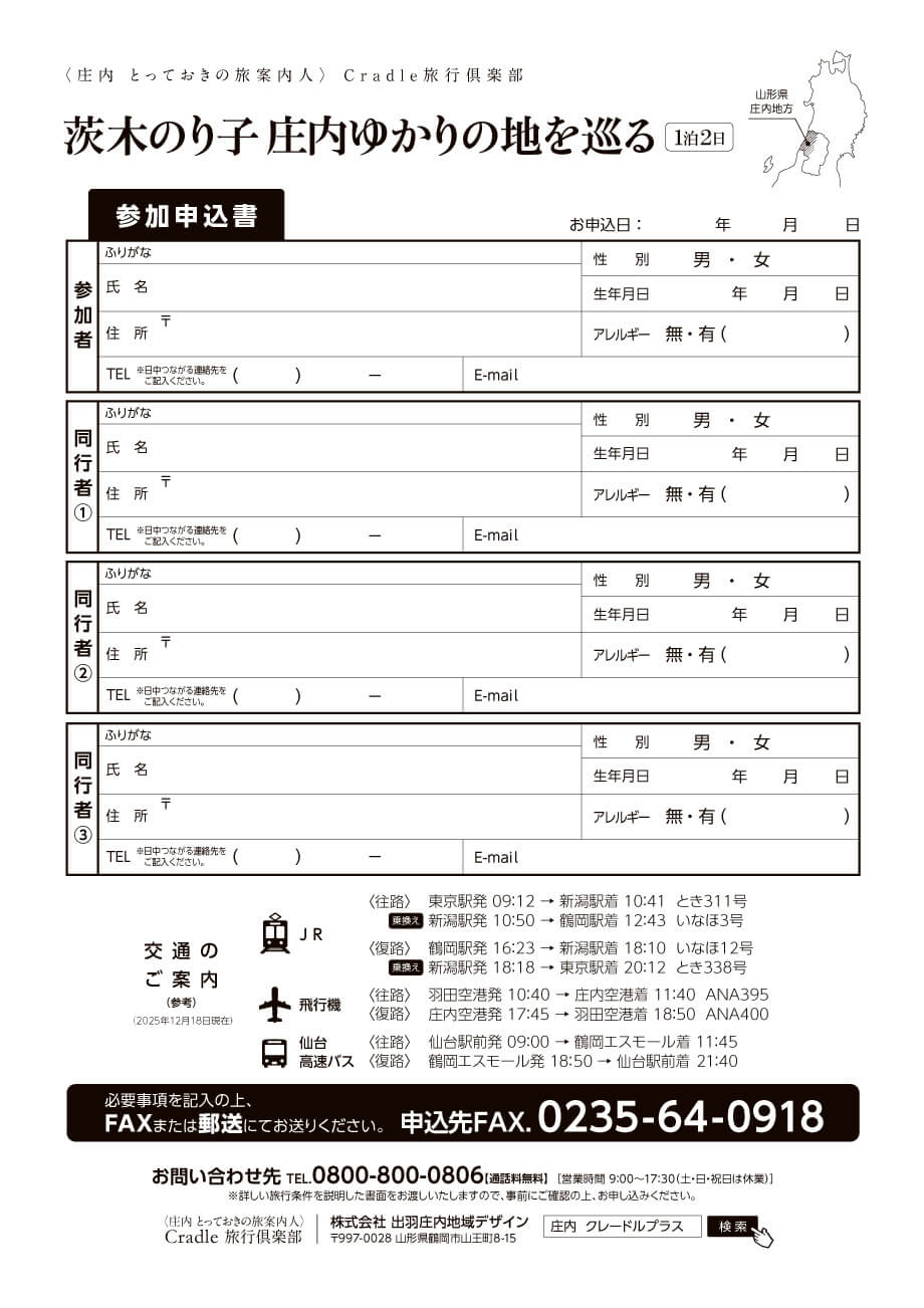 ③FAX 0235-64-0918(上記のチラシ裏面を印刷してご利用いただけます)