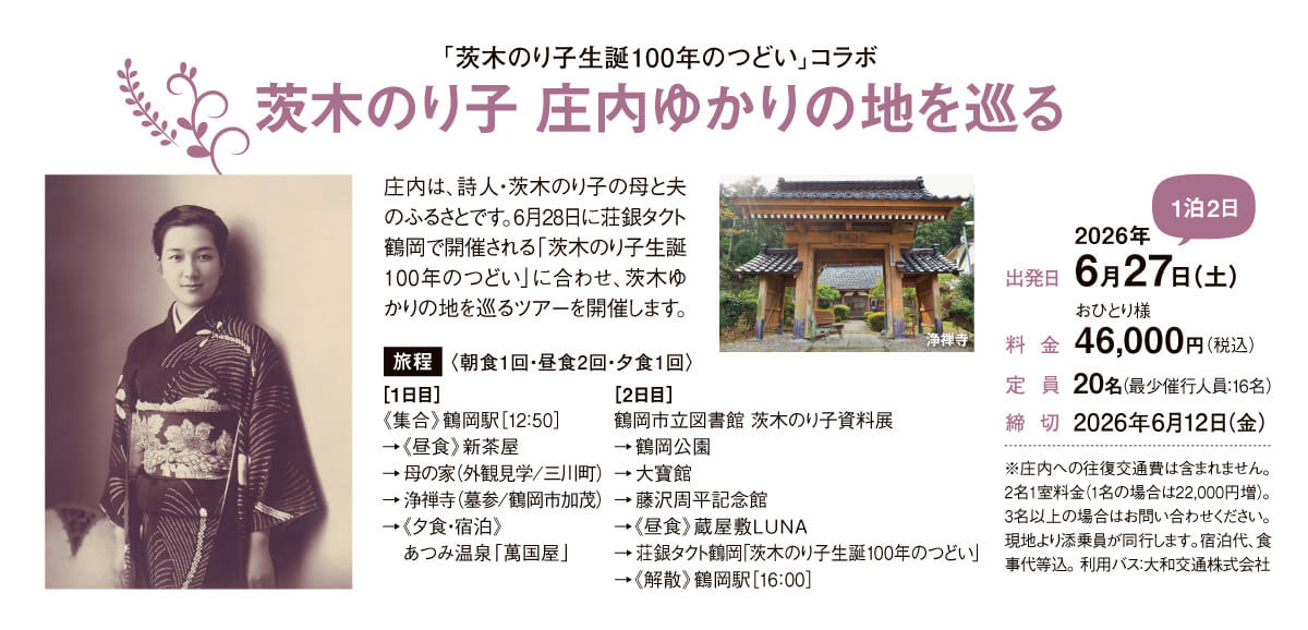 【2026.6.27】茨木のり子 庄内ゆかりの地を巡る〈1泊2日〉